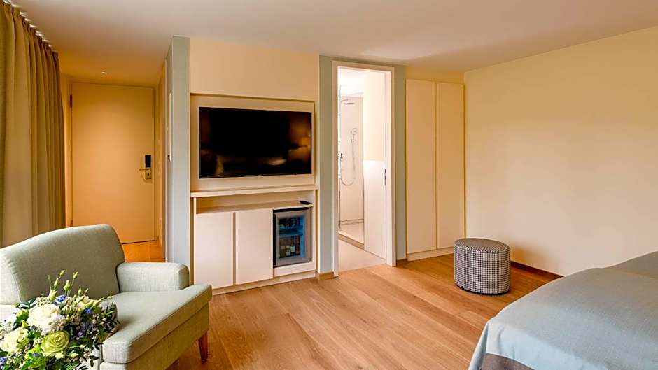 This room faces the park behind the building, is particularly spacious and features its own terrace.